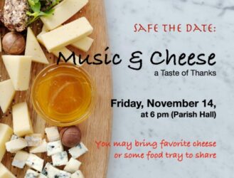 Safe the date: November 14 at 6:00 pm in the Parish Hall “Music and Cheese” a Taste of Thanks (bring...